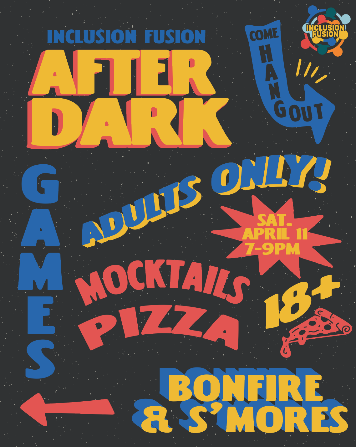 An inclusive social party for our adult members to hang out & meet other IF members outside of your weekly groups! Hanging out, pizza, board games, video games, mocktails, s’more at the bonfire & more activities!