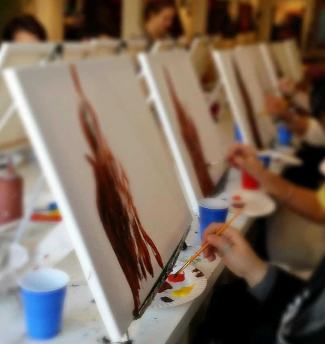 All art supplies are provided. Everyone goes home with their own canvas painting!